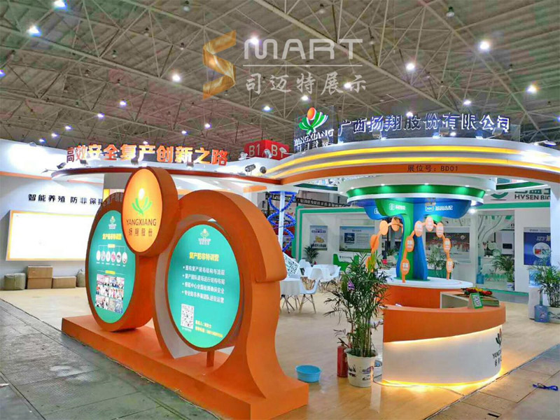 此次畜博會,司邁特通過有創(chuàng)意亮點的設計,在激烈的競爭中,有幸取得與廣州影子科技有限公(畜博會特別贊助商)、廣西揚翔股份有限公司的合作。司邁特充分從影子科技公司的產品特點著手,在設計的同時融入DNA分子結構造型、影子“籃子工程”,在現(xiàn)場施工的同時堅持把每一個細節(jié)做到極致,于5.17號,經過大家的不懈努力,讓展臺呈現(xiàn)出了獨特的吸引力。