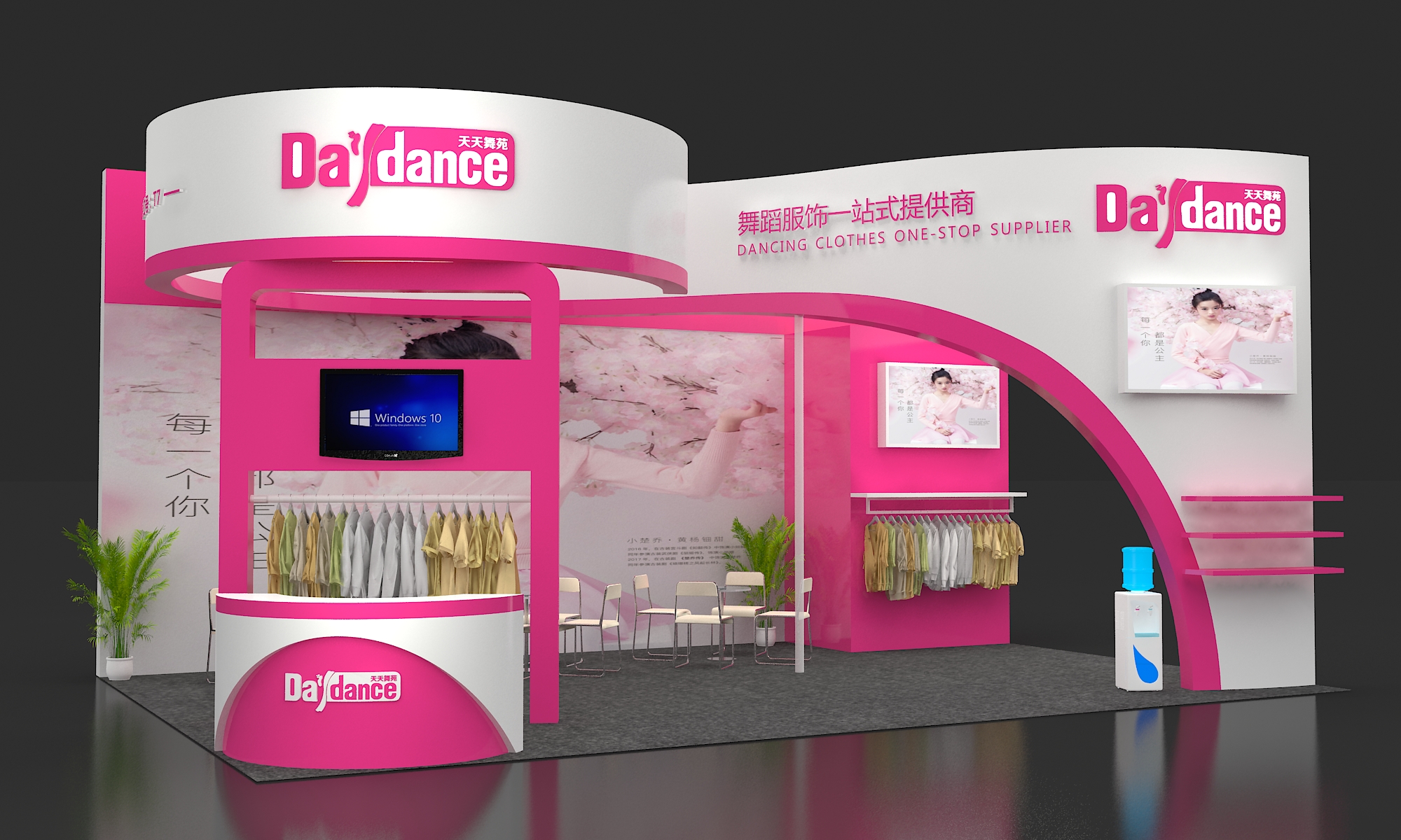 第二點,嚴格控制顏色運用,通常主色調(diào)只使用1種,輔助色最多不超2種。輔助色要盡量用于展臺整體線條輪廓的勾勒。